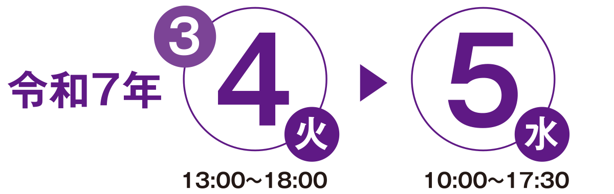 令和7年3月4日(火)13:00-18:00〜3月5日(水)10:00-17:30
